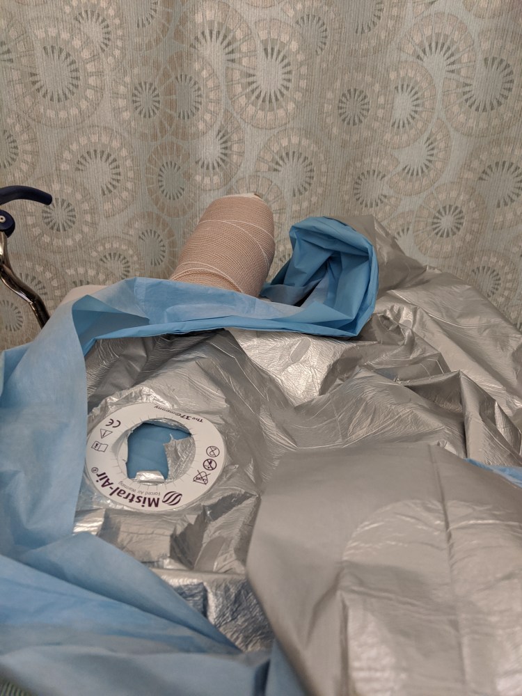 Keep your foot up, using an ice pack behind the knee or even over the wrap will be helpful, as your wraps getting smaller the icing will be more effective and you can start to feel it on your actual foot. Elevate foot above your heart and ice it regularly it can make a huge difference on swelling and pain. Make sure when using ice packs to ensure there isn’t condensation getting your foot wet, paper towels can help this!