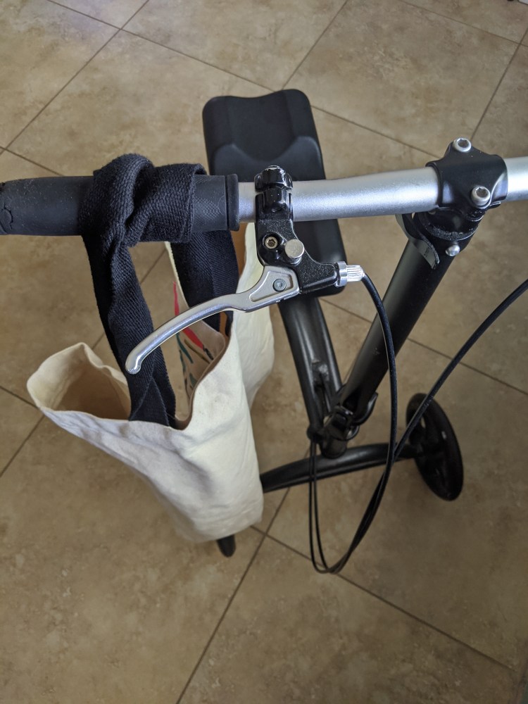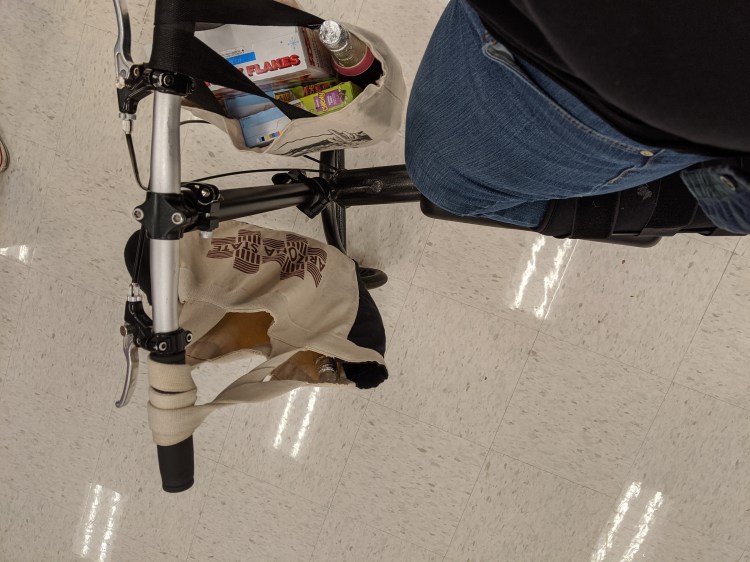 Couldnt carry or push basket, so used tote bags to shop!