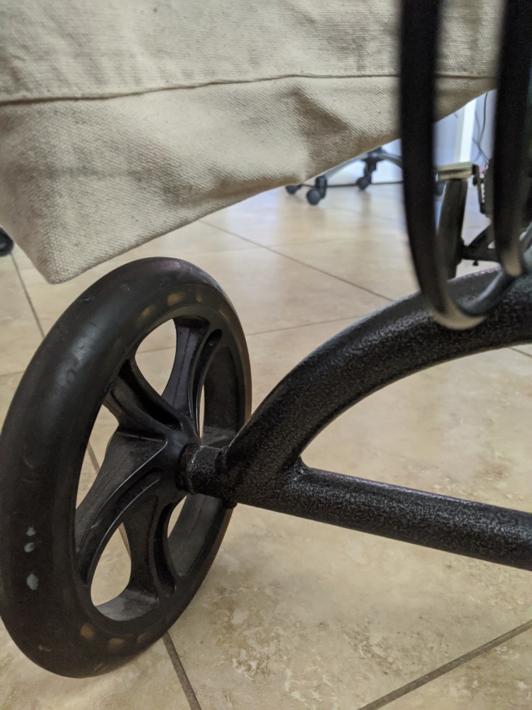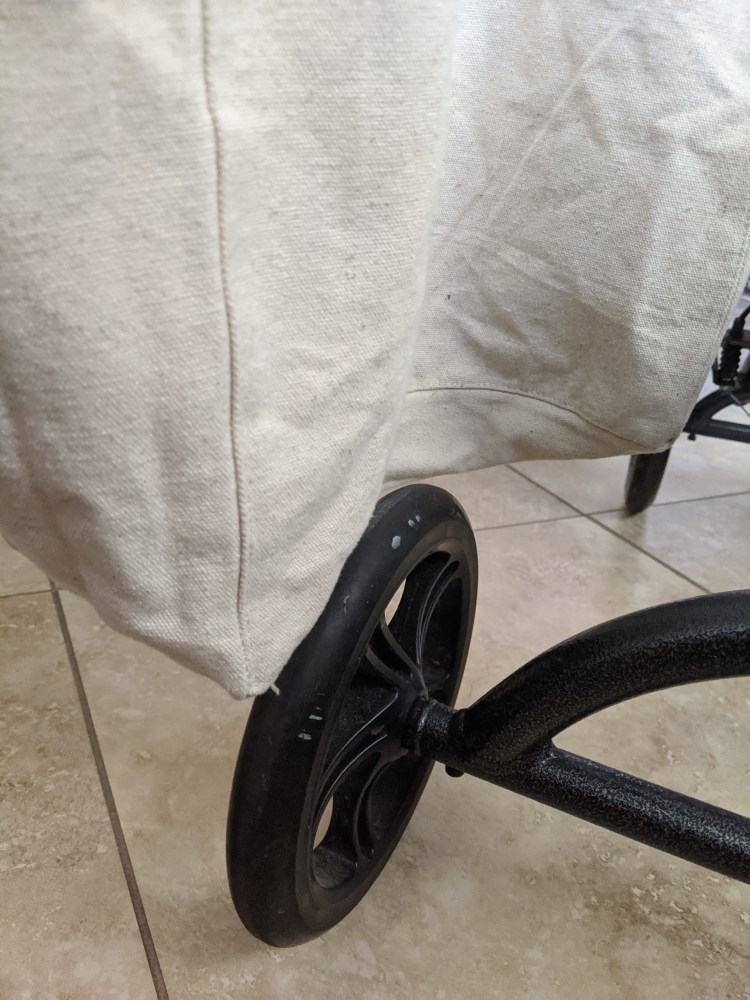 My bag was low so it drooped against the wheel.