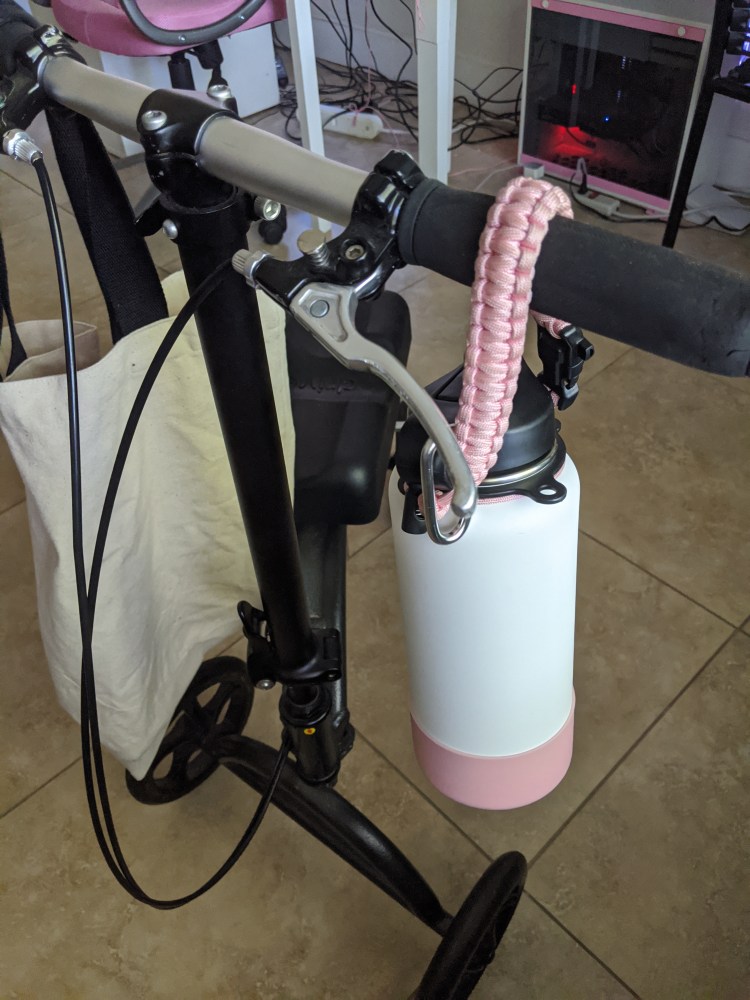 Used my waterbottle with a paracord handle I found online which was helpful and convienent!